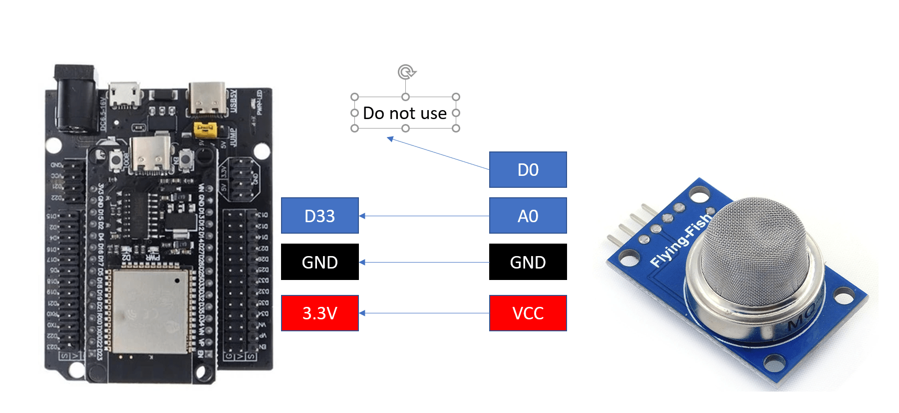 The analog output (from the AO pin) changes based on the concentration of gas. When there’s more gas in the air, the output voltage increases. When there’s less gas, the output voltage decreases