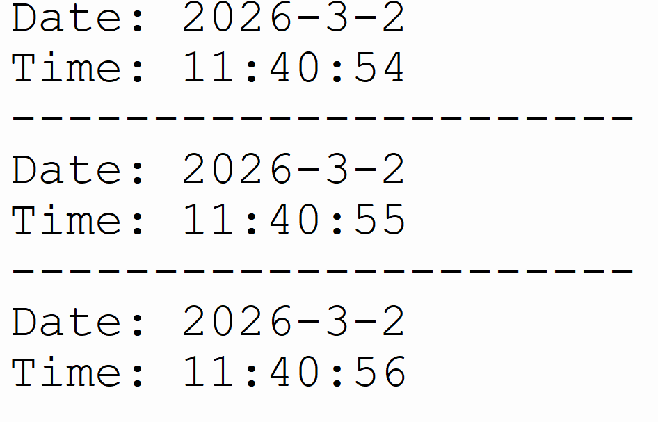 print("Time Set!")First, you need to set the time based on the current date and time.