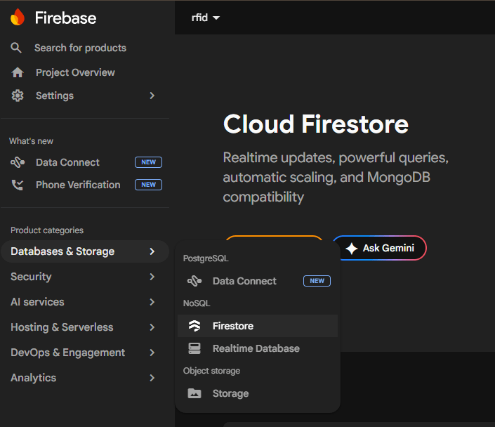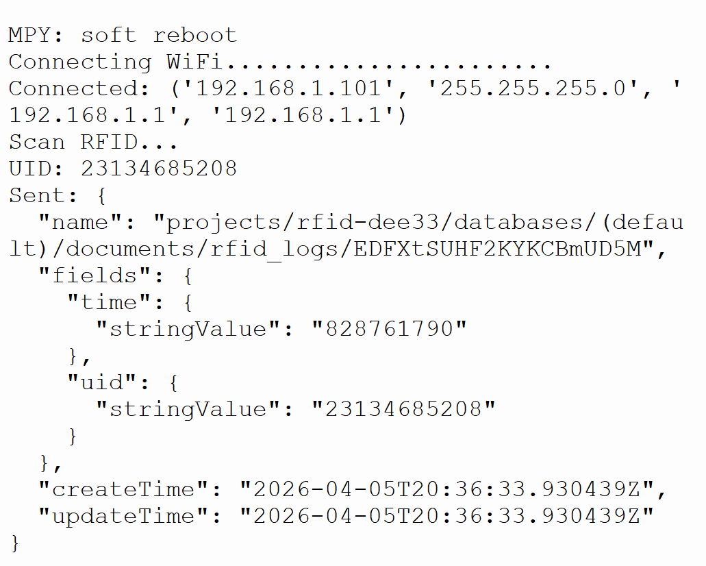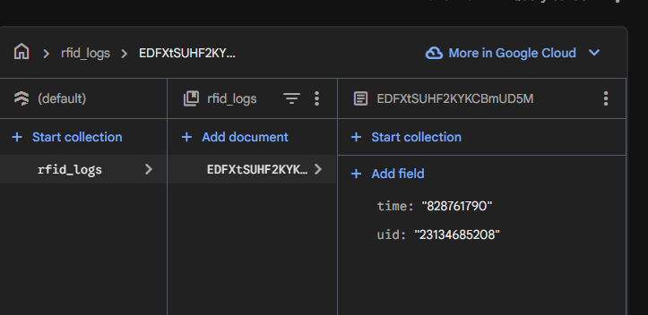 After we put the tag/card on the RFID, it will send to the Firestore as shown in here