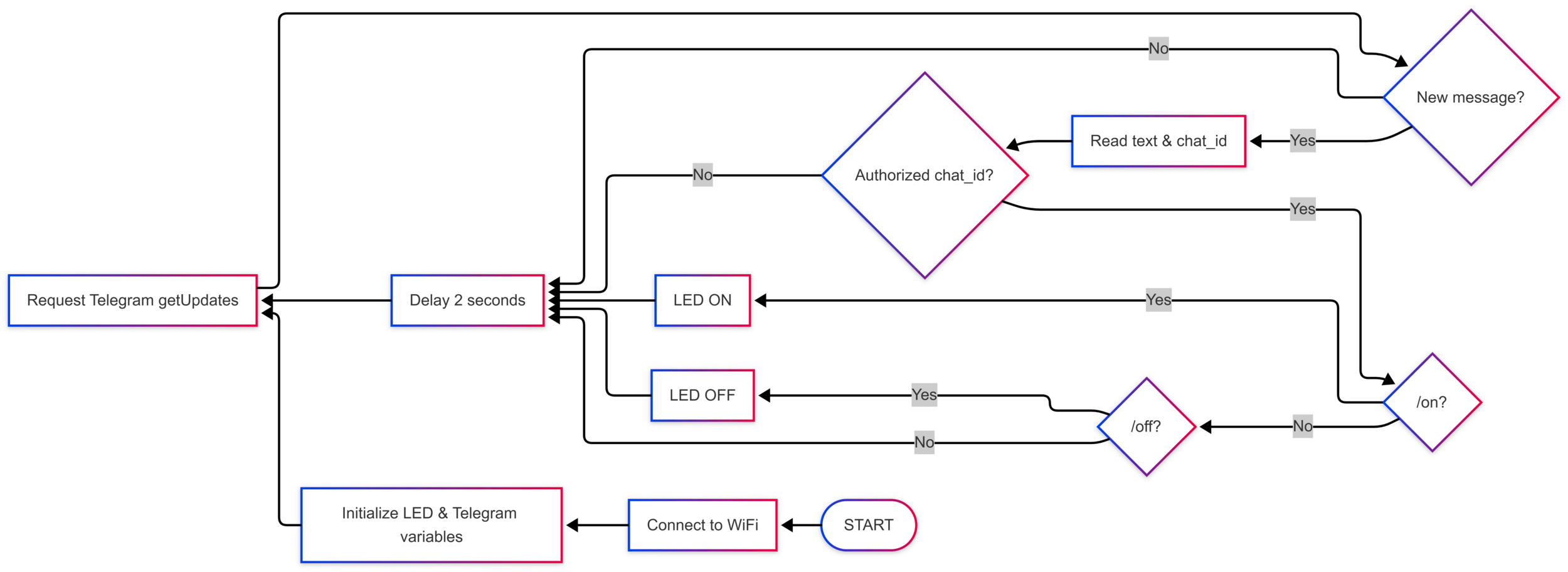 Reading commands (/on, /off, /temp)