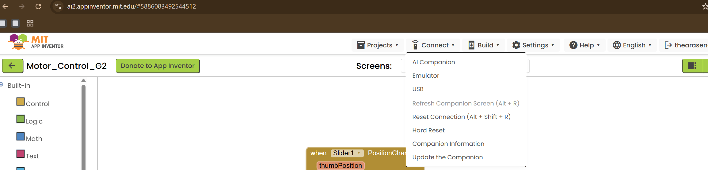 }Download the MIT App Inventor from your mobile phone and scan QR using MIT App Inventor AI Companion as shown below